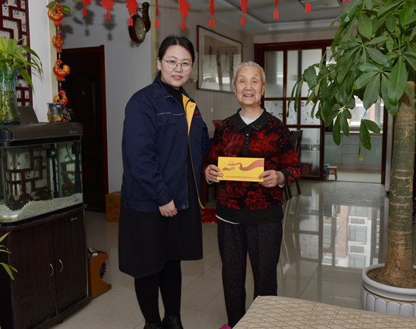 本報(bào)訊 (《煙臺(tái)日?qǐng)?bào)》水母網(wǎng) 文/圖 翟純明 劉妍宏 陳萍萍)1月16日上午,在山東金潮新型建材股份公司員工孫紹敏的家中,當(dāng)綜合管理部經(jīng)理孫陽陽將蘊(yùn)含金潮大愛的900元老人慰問金送到其母親手中時(shí),這位83歲的老人感激之情溢于言表。這是今年春節(jié)前夕,山東金潮股份公司行政人事中心組織各企業(yè)行政人事部門,為企業(yè)員工高齡父母發(fā)放“孝薪”的一個(gè)場景。據(jù)悉,今年春節(jié)前夕,金潮公司共計(jì)為321名員工438位高齡父母發(fā)放愛心慰問金31.6萬元。