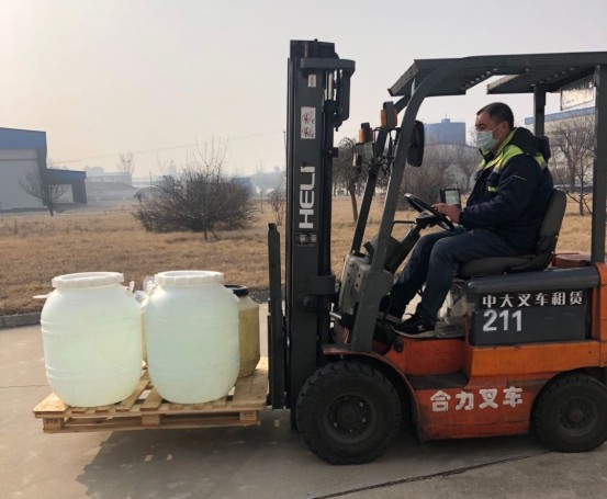 近日,在復(fù)工復(fù)產(chǎn)的關(guān)鍵時刻,1.75噸防疫急需的各種濃度的消毒液陸續(xù)從金潮果蔬公司運往股份公司、新材、電池、招和、建工、地產(chǎn),以及周邊溫家、鑫泰電纜廠和岔道村等單位。在抗擊新型冠狀病毒疫情的緊要關(guān)頭,為解各企業(yè)消毒液匱乏的燃眉之急,2月9日,金潮果蔬緊急安排生產(chǎn)、品控等專業(yè)人員到廠,積極組織干部員工加班配置消毒液。經(jīng)過不懈的努力,1.75噸各種濃度的消毒液配制完畢。