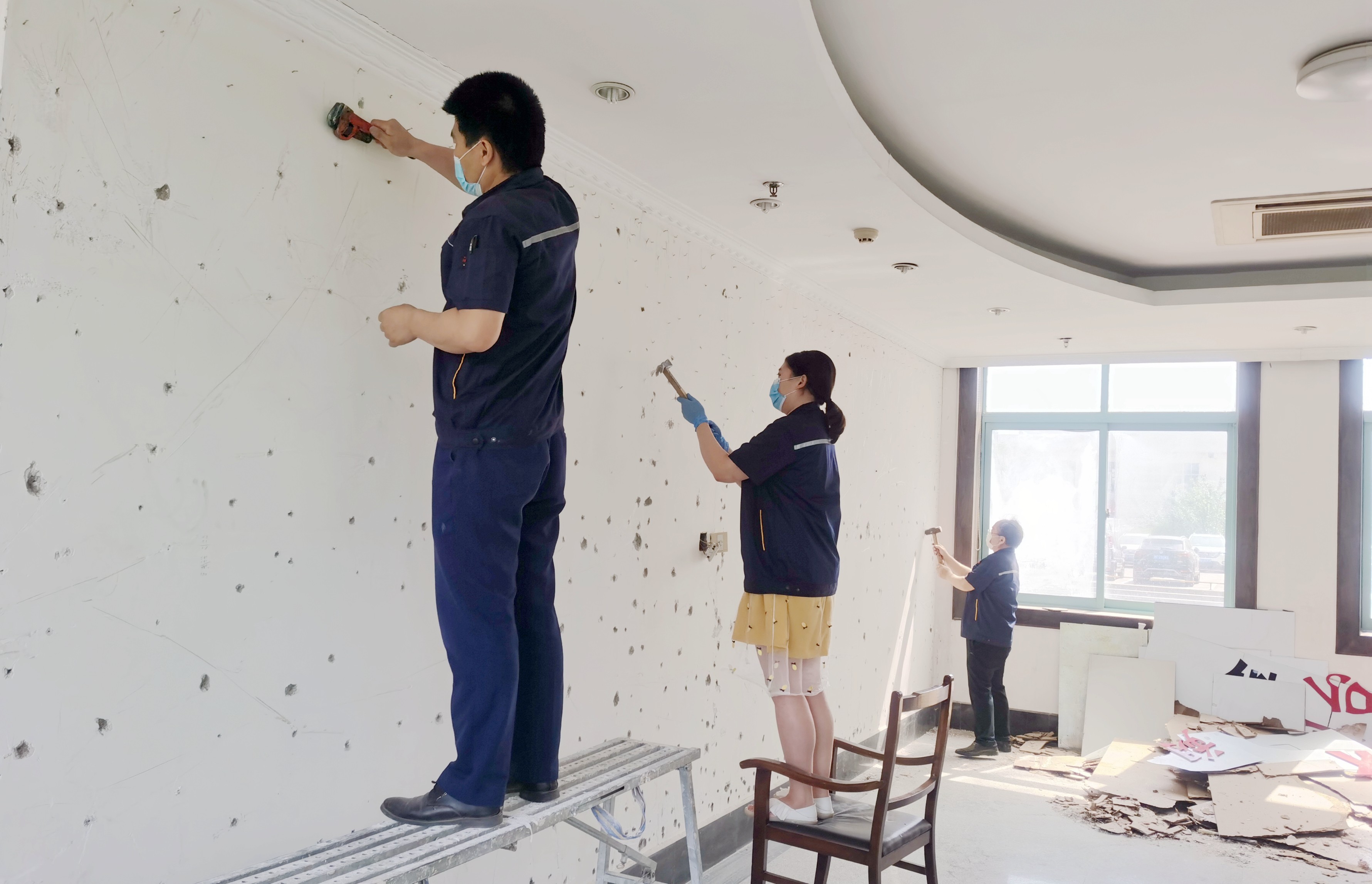 為加快“職工之家”項(xiàng)目建設(shè)進(jìn)度,招遠(yuǎn)市總工會領(lǐng)導(dǎo)多次深入現(xiàn)場指導(dǎo),金潮公司行政人事中心積極協(xié)調(diào)解決項(xiàng)目運(yùn)作中的問題和困難,并與設(shè)計(jì)公司及施工單位協(xié)商,確定工期為20天。行政人事中心全體員工明確分工、落實(shí)責(zé)任,團(tuán)結(jié)協(xié)作、緊密配合,撰寫文稿、拍攝圖片,貨比三家網(wǎng)購“職工之家”所需物品,清理墻壁上的鋼釘、搬運(yùn)圖書及物資;校對修訂文稿、篩選確定圖片。潤禾建筑有限公司技術(shù)人員多次現(xiàn)場實(shí)地勘察、及時擬定施工平面圖;按照金潮公司提供的圖文資料,天地人禮儀文化傳媒有限公司設(shè)計(jì)師反復(fù)修改,最終確定設(shè)計(jì)方案。