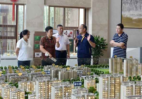 最后,在金潮地產(chǎn)常務(wù)副總經(jīng)理程人光的指引下,調(diào)研組一行又到金潮·格林春天項目營銷中心參觀。走進營銷中心,“摯愛歸家”幾個字讓人即刻感受到金潮溫暖的家文化。程人光介紹說:“格林春天項目是金潮地產(chǎn)開發(fā)的第五個項目,也是招遠市的重點棚改項目。為了讓市民享受到歸家的溫暖,公司不惜重金誠邀上海同濟大學(xué)設(shè)計團隊打造,分為‘琴、棋、書、耕、家’5個社區(qū),并設(shè)有符合青年人個性特點的住宅時尚區(qū),也有重點規(guī)劃的養(yǎng)老住宅、老年人日間照料中心等養(yǎng)老設(shè)施來滿足老年人頤養(yǎng)和康復(fù)等需求,達到老有所養(yǎng)、青有所為,秉承‘一生之城’理念,引領(lǐng)招遠市棚戶區(qū)改造的居住新風(fēng)尚,樹立招遠市棚戶區(qū)改造的新標(biāo)桿。”