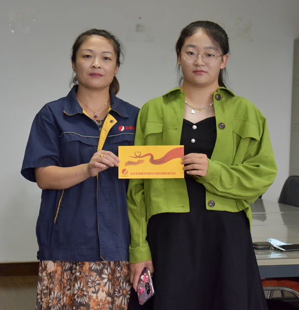 本報(bào)訊 “真沒想到,俺的孩子今年考上大學(xué)領(lǐng)到了公司頒發(fā)的3000元獎(jiǎng)學(xué)金,成為山東金潮控股集團(tuán)公司愛心基金2021年度金秋助學(xué)的受益者!感謝公司領(lǐng)導(dǎo)的關(guān)愛,俺一定敬業(yè)愛崗、加倍努力工作,以實(shí)際行動(dòng)回報(bào)企業(yè)。同時(shí),俺要教育自己的孩子懂得感恩,好好學(xué)習(xí),增長(zhǎng)知識(shí),將來學(xué)有所成回報(bào)社會(huì),報(bào)效祖國(guó)!”一位考上大學(xué)的學(xué)生家長(zhǎng)深有感觸地說。這是8月30日上午,山東金潮控股集團(tuán)有限公司行政人事中心向9名考上大學(xué)的職工子女頒發(fā)獎(jiǎng)學(xué)金時(shí),前來領(lǐng)獎(jiǎng)的職工發(fā)自肺腑的共同心聲。