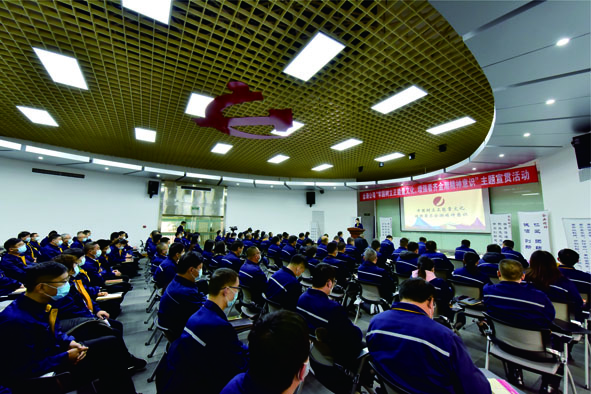 本報(bào)訊 “‘雄關(guān)漫道真如鐵,而今邁步從頭越’。我們將不忘初心,一如既往,開(kāi)拓創(chuàng)新,善作善成,以‘海納百川,有容乃大’的胸懷,以 ‘長(zhǎng)風(fēng)破浪會(huì)有時(shí),直掛云帆濟(jì)滄海’的豪情,以‘千淘萬(wàn)漉雖辛苦,吹盡狂沙始到金’的毅力,以‘抓鐵有痕,踏石留印’的精神,以‘眾人劃槳開(kāi)大船,同舟共濟(jì)渡難關(guān)’的斗志,乘‘合伙制’改革的強(qiáng)勁東風(fēng),再創(chuàng)新輝煌,續(xù)寫(xiě)新傳奇,再譜新篇章!” 在2022年新年元旦即將到來(lái)之際,12月25日上午,山東金潮控股集團(tuán)有限公司報(bào)告廳二樓會(huì)議室座無(wú)虛席,宣貫者那鏗鏘有力、擲地有聲、充滿激情的感人話語(yǔ),以及陣陣熱烈的掌聲響徹大廳。這是公司舉行“牢固樹(shù)立正能量文化,增強(qiáng)看齊金潮精神意識(shí)”主題宣貫活動(dòng)的精彩瞬間。董事長(zhǎng)程紹華,董事苑永海、彭殿坤、曹雪松,各企業(yè)、各部門(mén)主管級(jí)以上干部及部分骨干員工200余人參加了宣貫活動(dòng)。