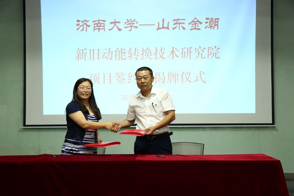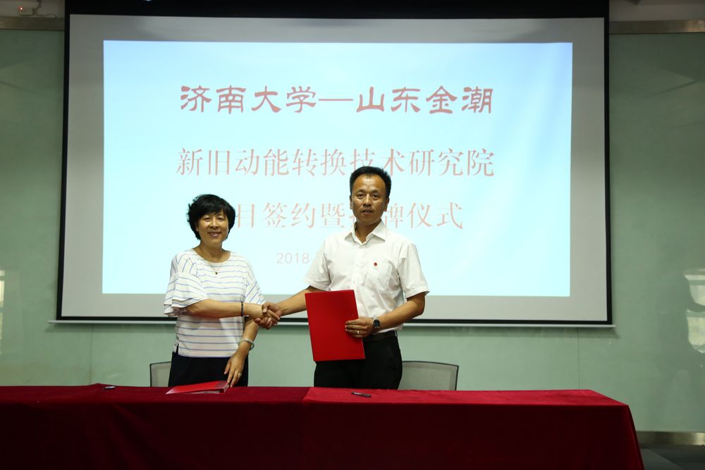 6月30日上午, 山東金潮公司在報(bào)告廳二樓會(huì)議室隆重舉行“濟(jì)南大學(xué)——山東金潮新舊動(dòng)能轉(zhuǎn)換技術(shù)研究院”項(xiàng)目簽約暨揭牌儀式。這標(biāo)志著“濟(jì)南大學(xué)——山東金潮新舊動(dòng)能轉(zhuǎn)換技術(shù)研究院”正式運(yùn)行;標(biāo)志著“校企合作”戰(zhàn)略全面啟動(dòng)。